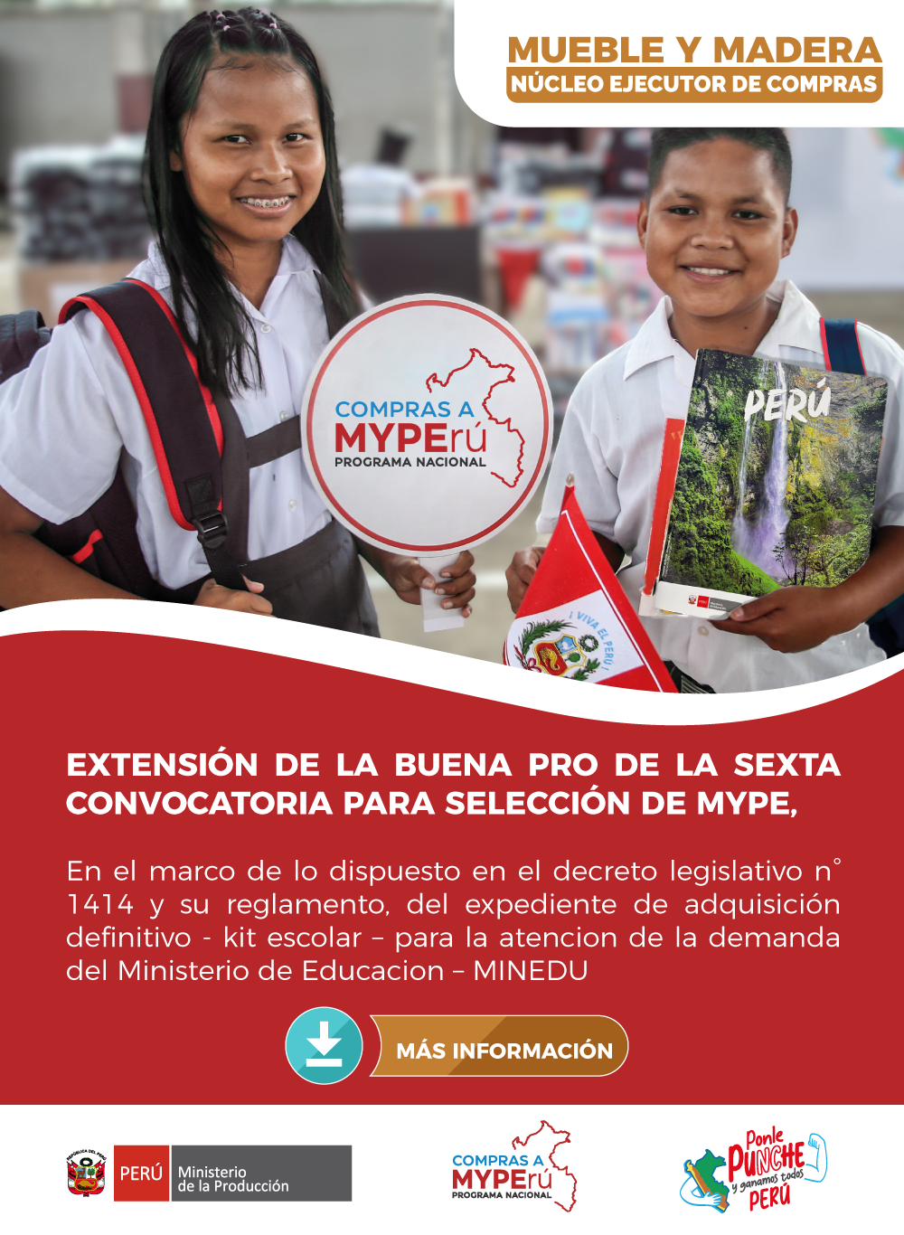 Somos el Núcleo Ejecutor de Compras para el Sector Productivo de Muebles, Madera y Plástico que tiene por finalidad promover y facilitar el acceso a las micro y pequeñas empresas a las compras públicas impulsando su desarrollo productivo y económico, en el marco de lo establecido en el DL N° 1414.